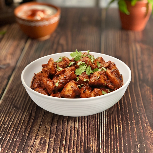 Chicken Pepper Fry is a delectable non-vegetarian appetizer that brings together succulent chicken chunks, infused with the heat of black pepper and the richness of traditional spices. Stir-fried to perfection with onions, curry leaves, and a hint of garlic, this dish offers an irresistible balance of spice and savories. Perfect as a starter or a side dish, it pairs well with naan, parotta, or even steamed rice. A must-try for spice lovers!